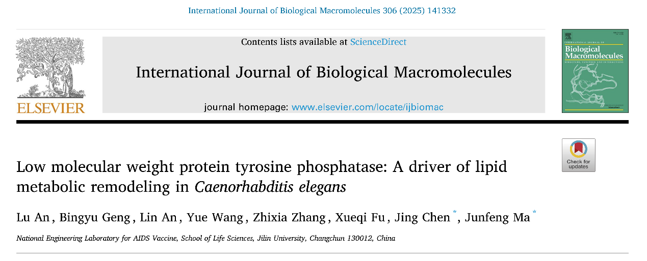 该成果以《Low molecular weight protein tyrosine phosphatase: A driver of lipid metabolic remodeling in Caenorhabditis elegans》为题,发表于国际学术期刊International Journal of Biological Macromolecules。此项研究工作得到了国家自然科学基金、国家重点研发计划以及吉林省科技发展项目的支持。论文的完成单位为楠楠漫画