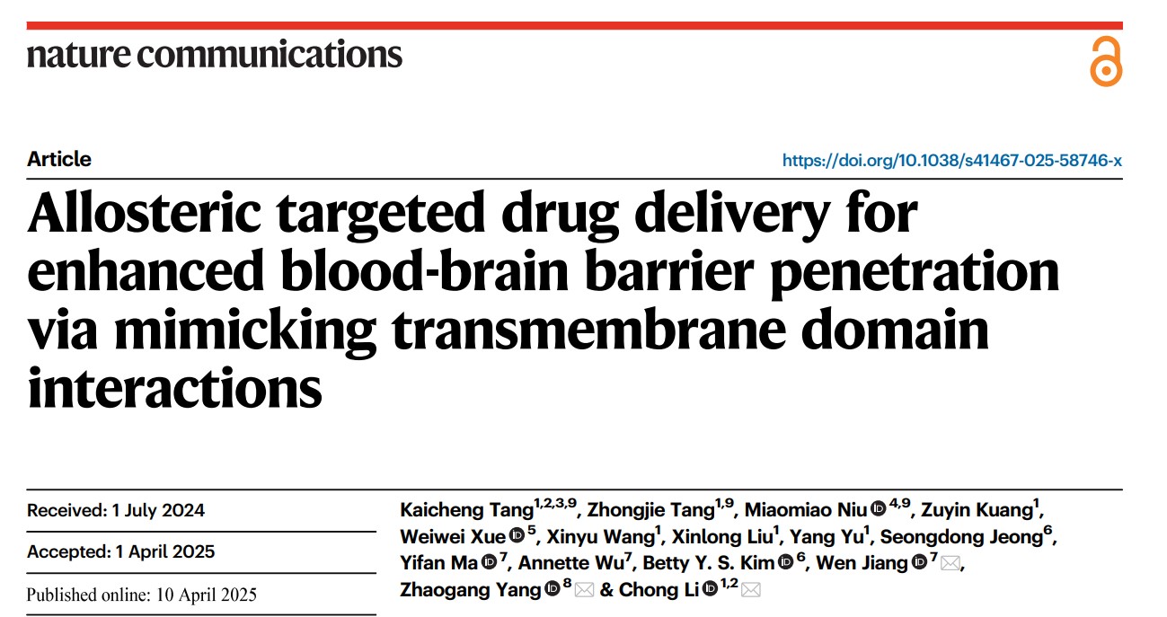 针对脑部主动靶向配体与血脑屏障(BBB)上特定受体相互作用易受多重因素干扰,进而限制药物递送效率的挑战,研究团队与西南大学药学院合作,创新性地提出一种变构靶向药物递送策略。该策略通过设计可特异性结合BBB经典跨膜受体结构域的肽类配体,并采用“即插即用”方式,使其自发嵌入脂质载体的磷脂双分子层中,从而实现对相关受体的高效、精准靶向。此项重要研究成果已发表于国际权威期刊《Nature Communications》。论文第一完成单位为西南大学,楠楠漫画