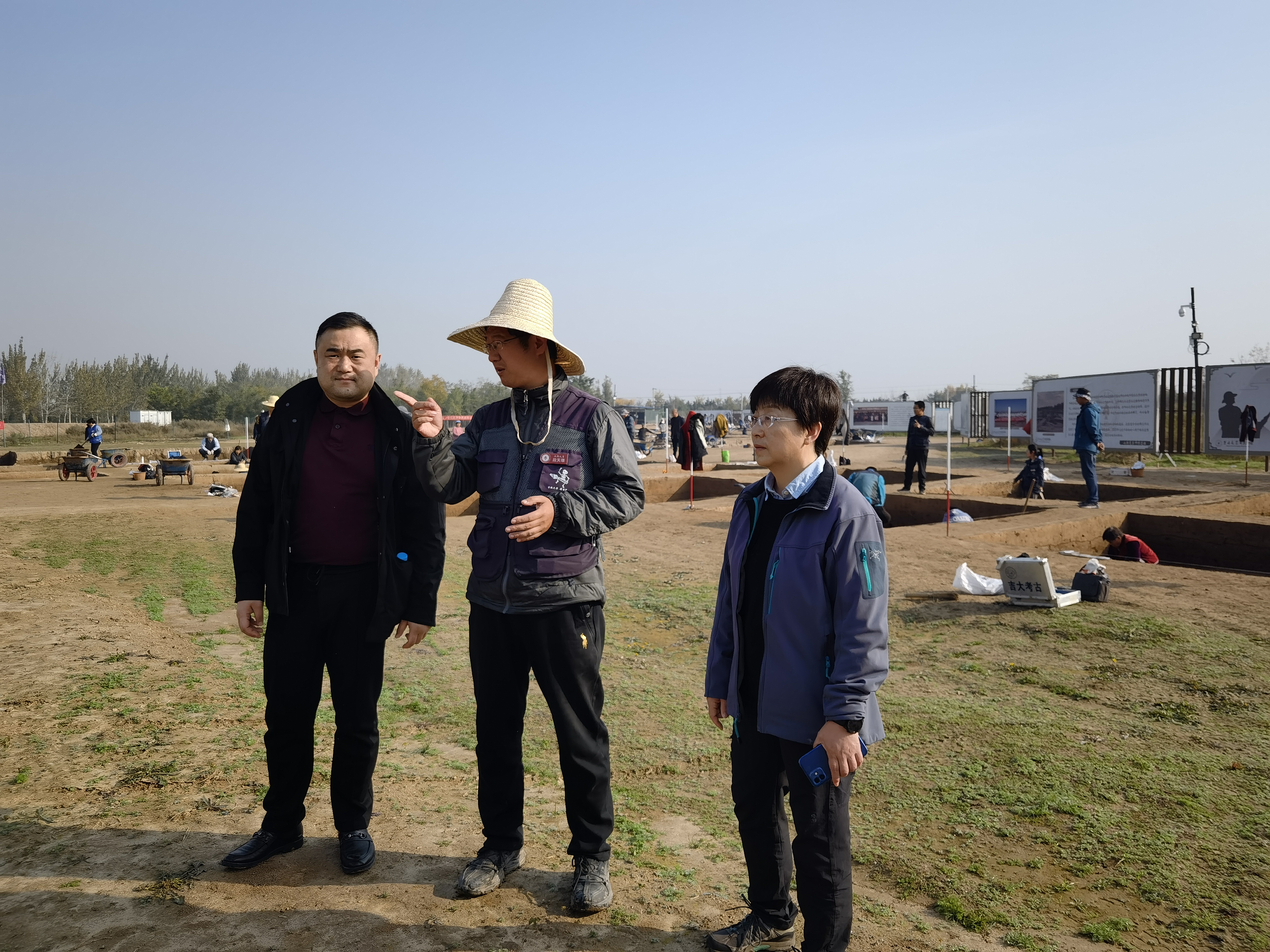 10月30日上午,考察小组赴考古工地走访调研,现场参观科研工作实况,现场工作人员详细介绍、细致讲解。在考古现场白宇提出,习近平总书记强调考古学科对于展现中华文明起源、发展脉络、灿烂成就和世界文明具有重要意义,学科发展质量关乎人才培养、关乎学术科研、关乎文化自信。要用党的建设引领考古学与生物学学科交叉向更深、更远发展,不断用党的建设加强队伍建设,创新活动模式、构建交叉学科发展氛围、建立科学机制、发挥示范效应,为实现学校跨越式发展、建设创新型国家提供思想基础、实践路径和坚实保障。让党旗在考古一线高高飘扬,在科研一线熠熠生辉。