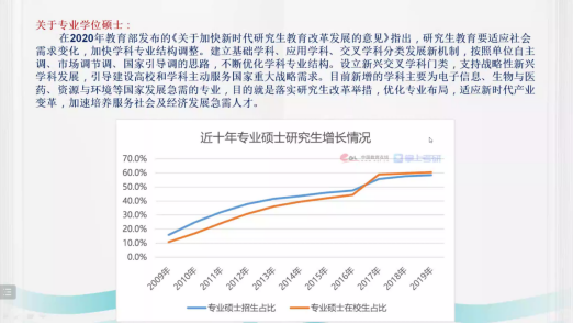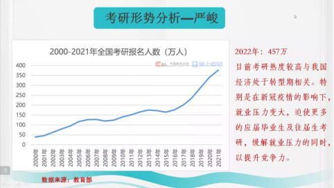 在考研形势方面,马俊锋列举多组数据、图表,综合分析了近几年的考研势头,并向同学们阐明了由于近年来国家经济转向高质量低增长率,在毕业生人数及就业难度增加等多重因素影响下,考研竞争压力逐渐增高的总体趋势。