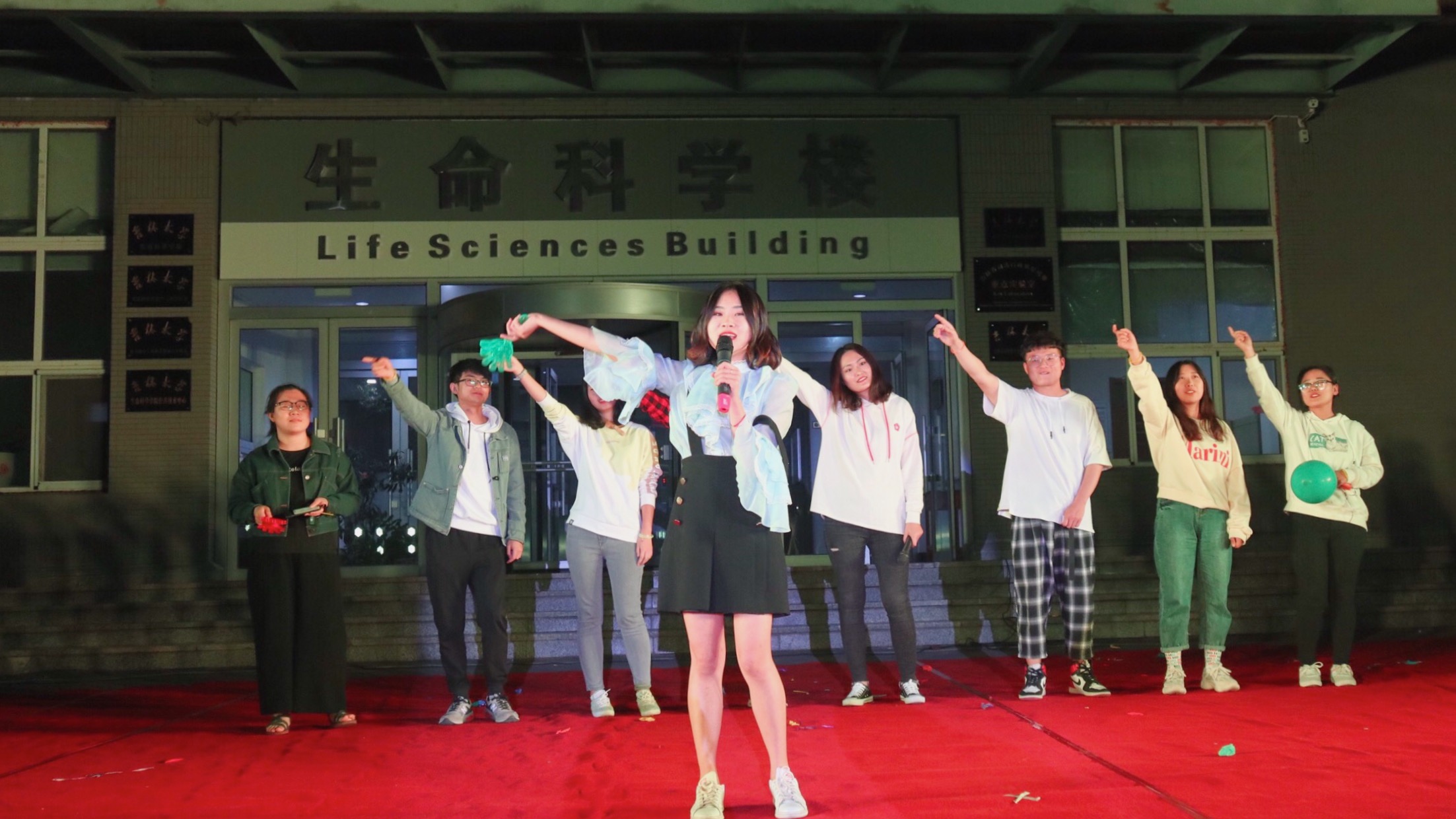 在生命科学楼前成功举办了“月圆生科”2018级研究生迎新晚会,学院领导、教师和2018级研究生新生参加晚会。
