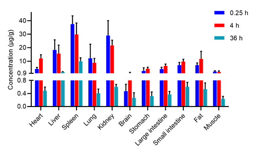 图2 PEG-PLA在大鼠组织、器官中的分布