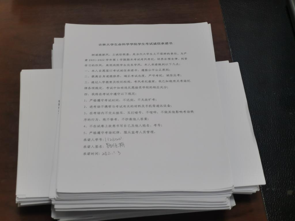 学生考试诚信承诺书》。