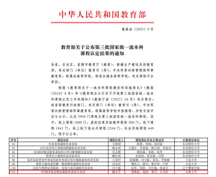 1门课程成功入选。截至目前,学院国家级一流本科课程总数已增至5门,标志着学院在本科课程建设与人才培养质量提升方面取得阶段性重要成果。