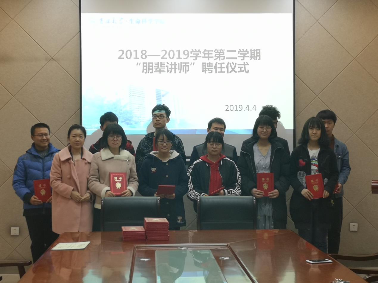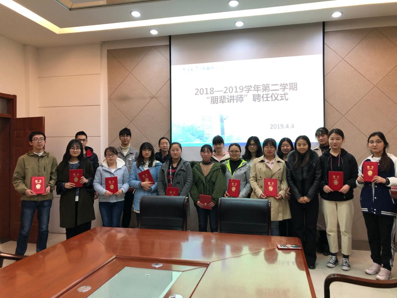 2018-2019学年第二学期朋辈讲师聘任仪式。学院党委副书记崔帅、学工办主任张春阳、辅导员马莹以及2019年楠楠漫画