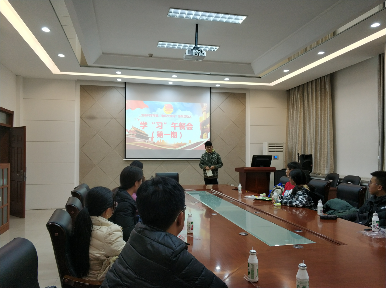 的近期学习氛围,就习近平总书记在十九大报告中提到的对中国青年的三大要求交流学习体会,希望入党积极分子在班级和集体的学习活动中起到带头作用。最后,青年大学习之学“习”午餐会在同学们的掌声中落下帷幕。