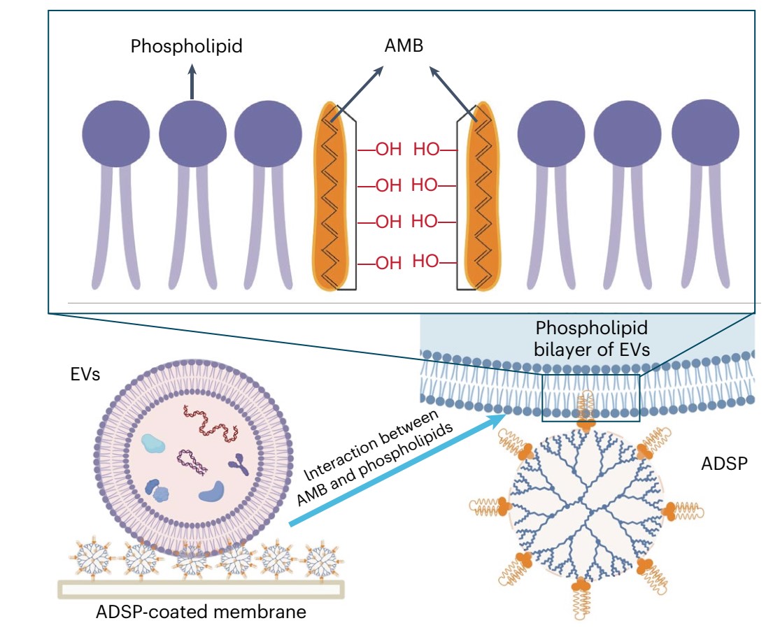 图1两亲性超分子探针与外泌体磷脂双分子层膜的相互作用示意图。