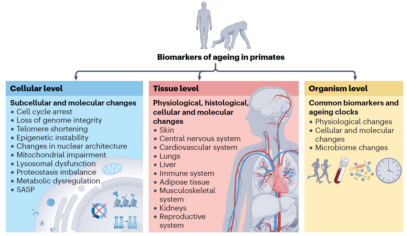 图1:灵长类衰老生物标志物概述