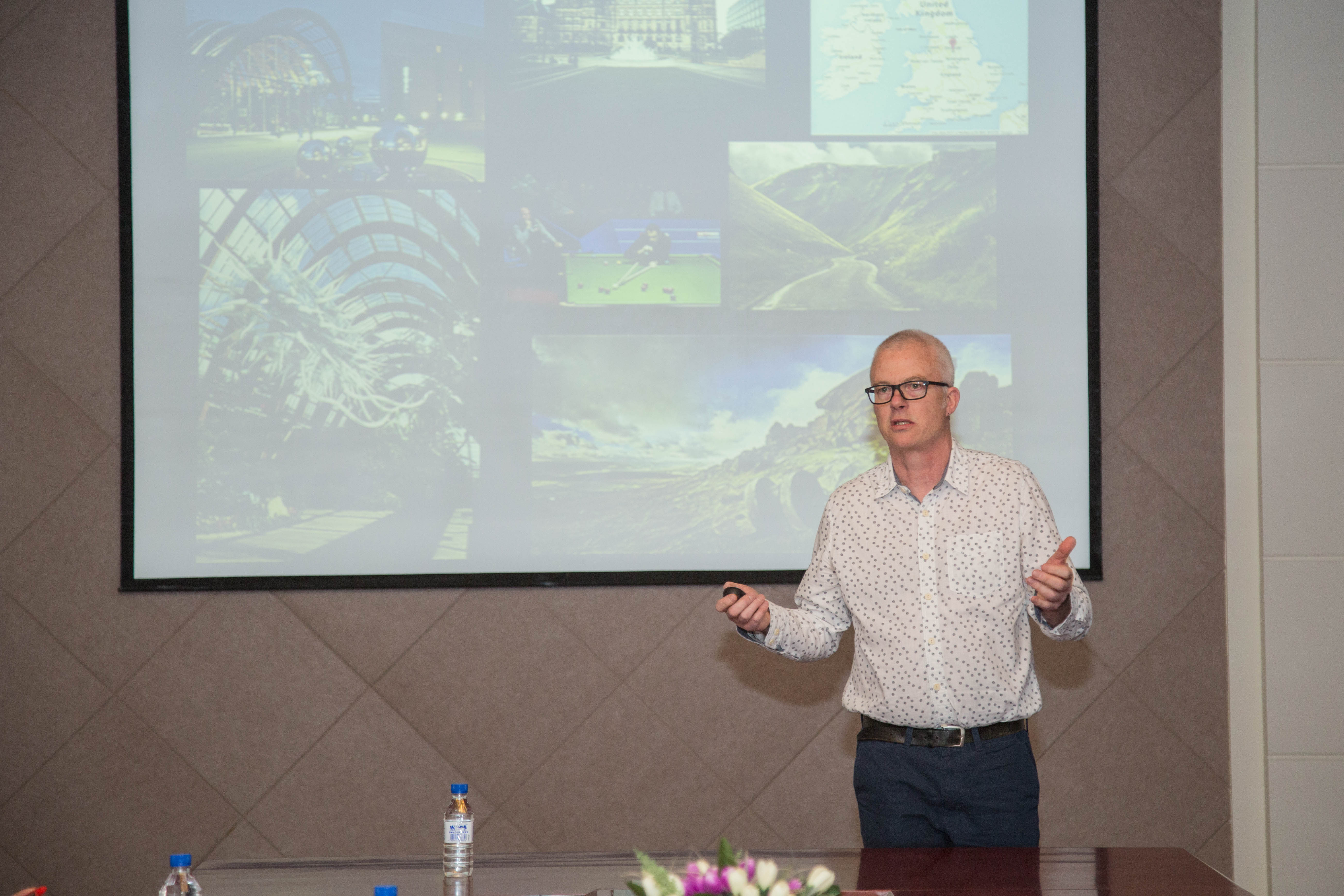 副院长马俊锋首先代表学院欢迎谢菲尔德大学代表团的来访,感谢谢菲尔德大学理学部一直以来对我院的关注,表示愿与对方建立实质性的合作。接下来理学部研究和创新主任、分子微生物学教授西蒙·福斯特为我院师生做了两个学术讲座,题目分别为: “Stapylococcus aureus: A super bug!”和 “Bacterial cell wall architecture and dynamics”,并与在场师生进行了互动交流。讲座结束后,双方对各自的科研与教学情况进行了介绍,并对学术研究、学生交流等问题进行了讨论。此次来访是双方合作的良好开端,为今后深层次交流打下了良好基础,有利于进一步提高学院国际化水平。