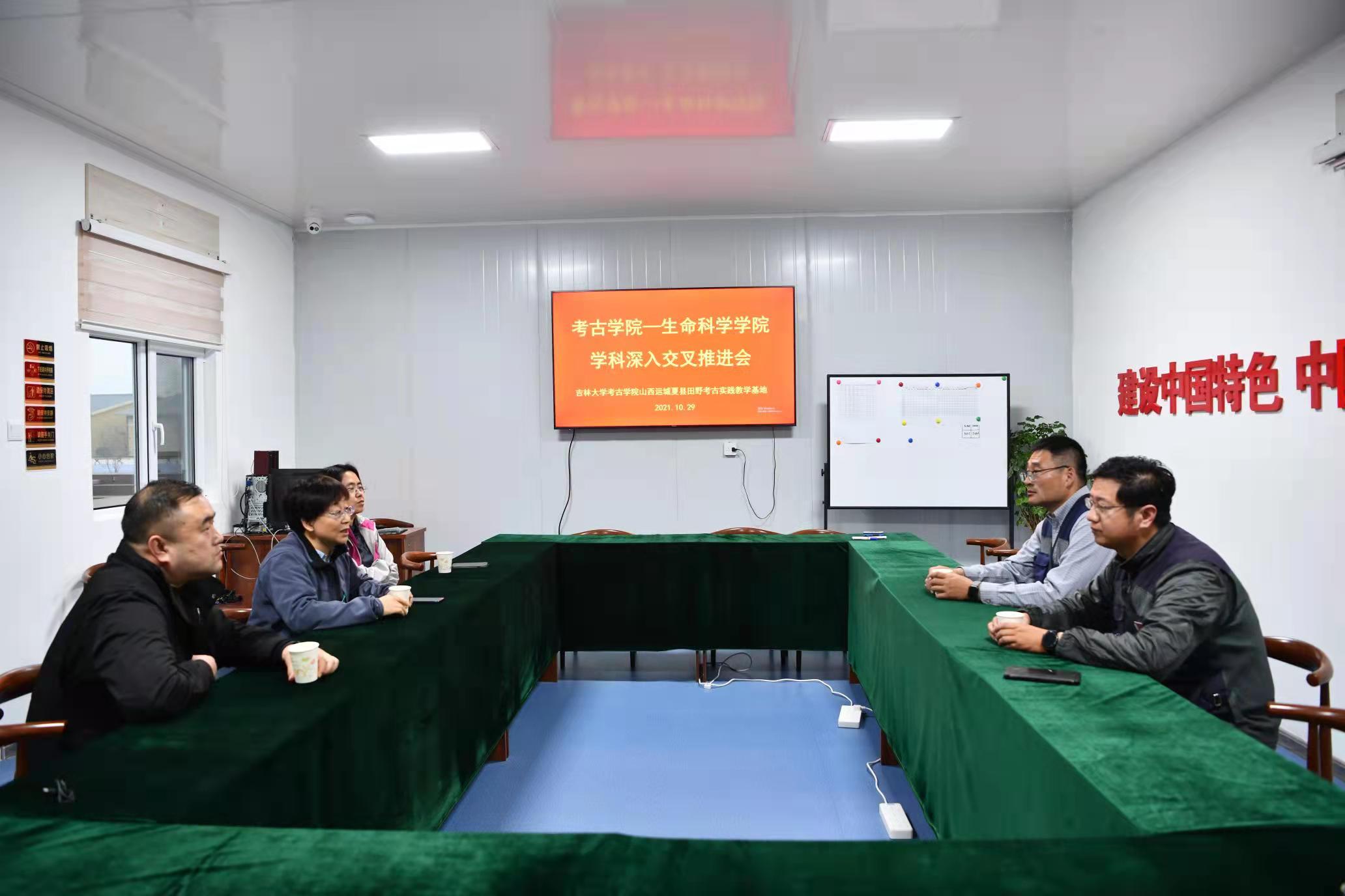 随后的座谈会上,双方就如何以党建引领学科深入交叉展开交流和探讨。段天璟对调研同志表示热烈欢迎,他指出,生物学与考古学的交叉发展的探索是破解“两张皮”现象的重要尝试,也是多学科交叉合作研究的重要模式,即通过考古学与自然科学进行“学科交叉”,进而形成新的学科生长点,从而产生真正的“交叉学科”;双方要进一步强化顶层设计、深入科学分析、打破知识壁垒、做好文物保护,推动双方合作向更高深的角度、更深入的方向发展。于湘晖对工作人员的热情接待表示感谢,对基地建设成果表示祝贺和鼓励,她指出考古学院稳定的教学基地、先进的田野技术以及“艰苦奋斗、实事求是、严谨认真、活跃思想”的精神为双方深入交叉融合提供了坚实的支撑,并对双方未来的合作发展前景表示期许。方启表示,学科交叉不是任务式的要求,而是打破现有桎梏、寻求新突破、找寻新发现点的重要途径,能够为考古学科注入新思路、新活力和新技术。崔银秋也表示,在发展学科交叉时,要把握真正以课题、科研和创新点为导向,真正做到深入的交叉合作。