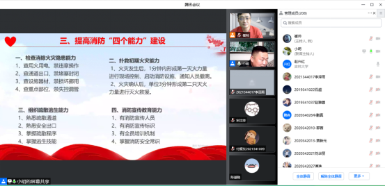 董立明强调了学校作为人员高度聚集的特殊场所,做好消防安全工作对于实验室安全、师生生命安全具有重要意义,以及每个人要重视和做好消防工作的责任义务;结合学校具体场景介绍了实验室、学生公寓和办公室等场所的消防安全制度,针对以往学校出现过的消防安全问题做出了重点讲解;在提高消防“四个能力”建设方面,重点讲解了如何提高扑救初期火灾的能力以及疏散逃生的注意事项。