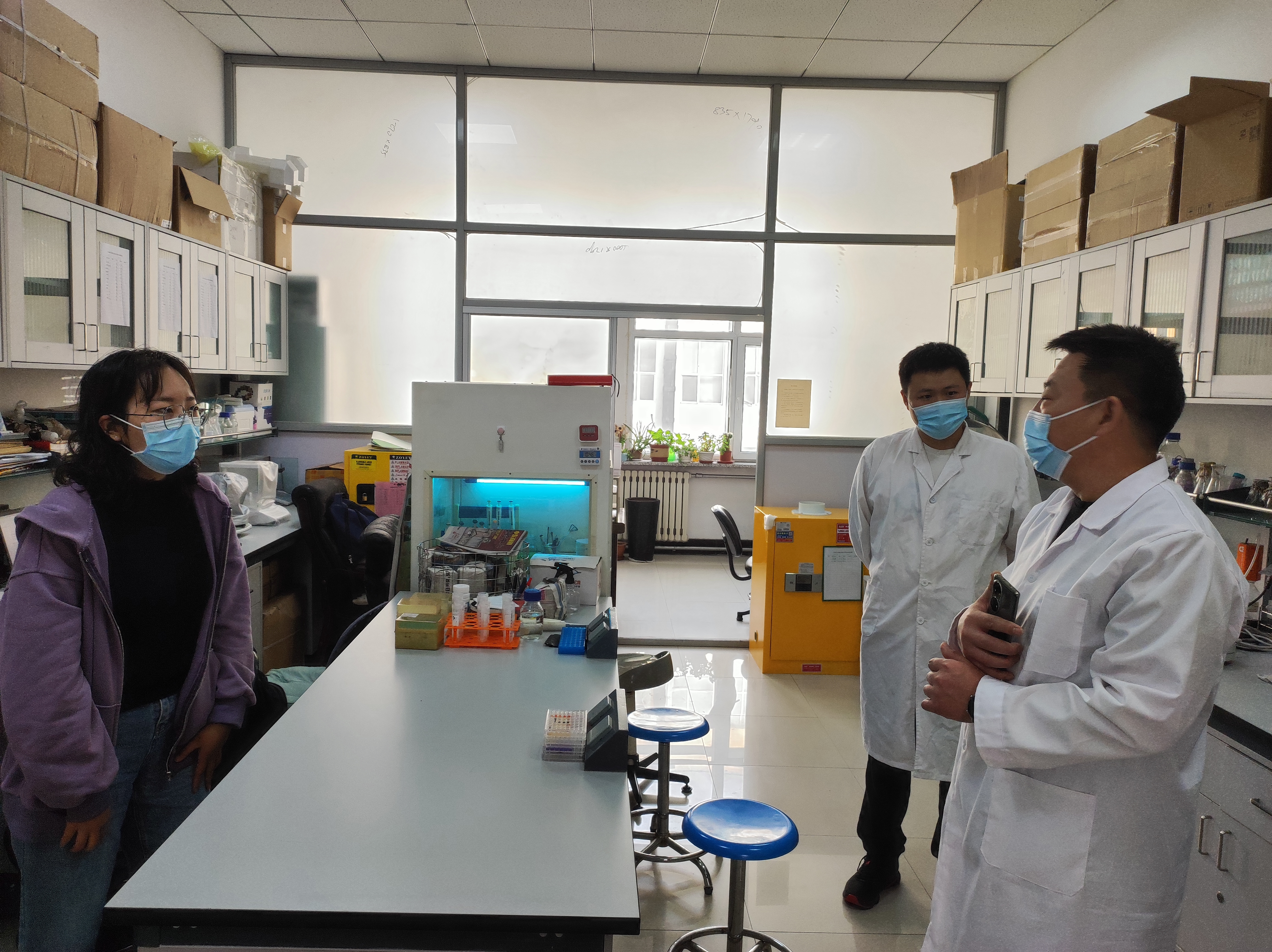 林相友表示,实验室安全管理工作小组是扎实推进实验室安全工作的基石,小组成员要注重强化自身大局意识和责任意识,疫情防控期间要把握住学生需求这一出发点,找准学校疫情防控管理要求这一着重点,做到统筹兼顾,将实验室试剂、药品等必需物资按学校制度严格进行消杀后进入校园。