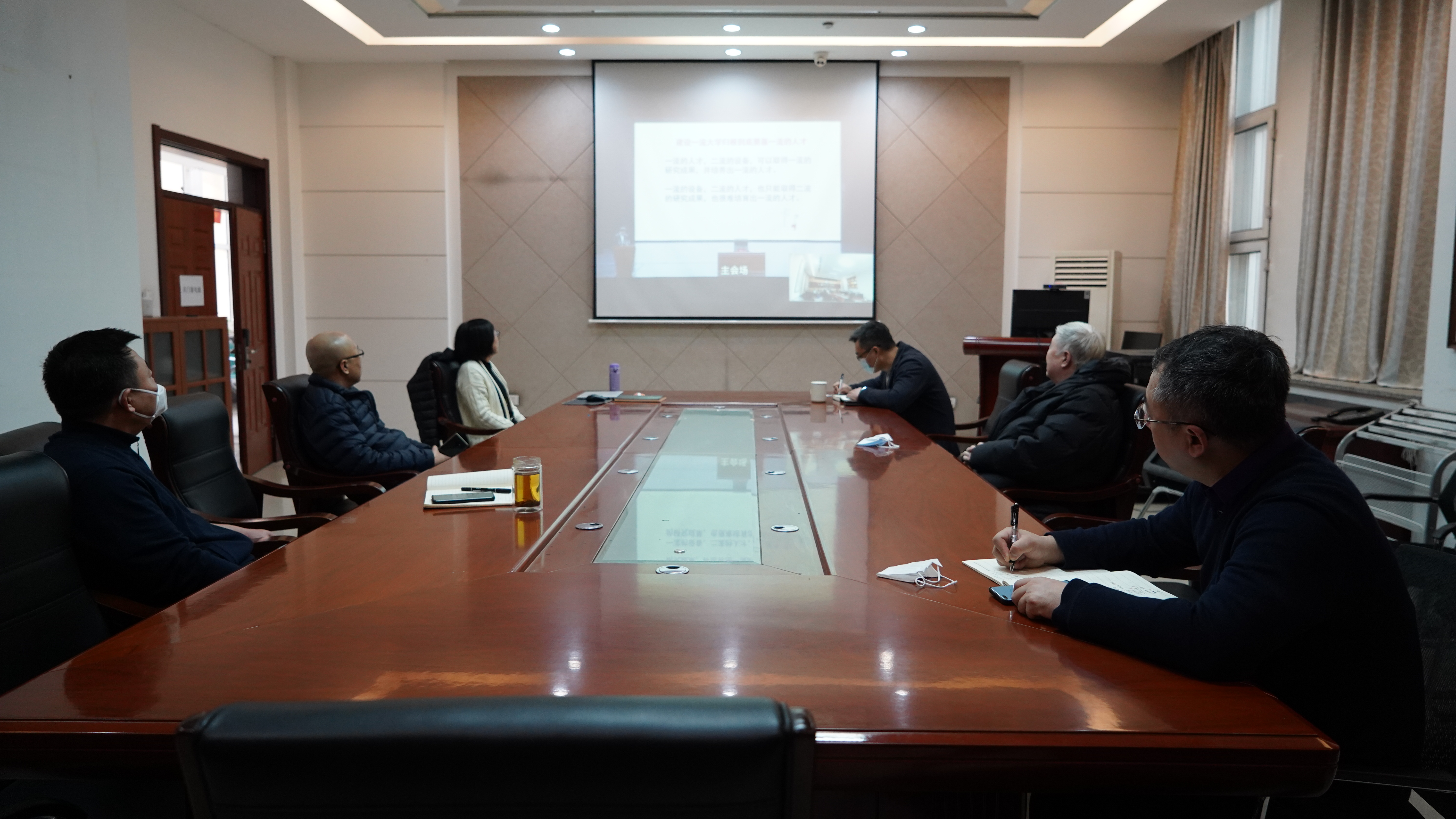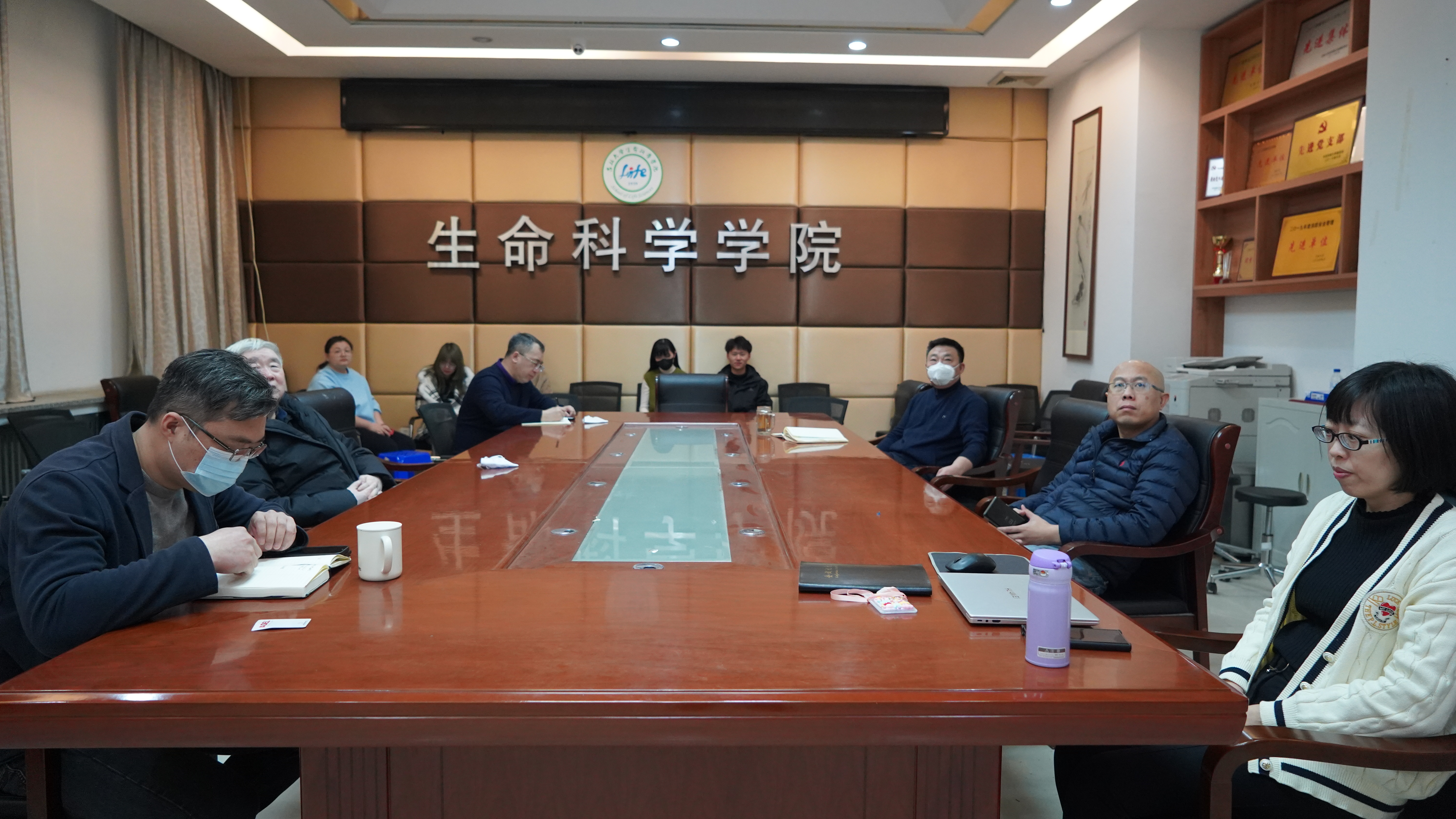 于生命科学楼335会议室设置分会场。学院教学委员会主任委员滕利荣、党委副书记林相友、党委副书记兼副院长刘柏岩、副院长马俊锋、李全顺、行政副院长崔帅和学生代表认真听取了本次会议。