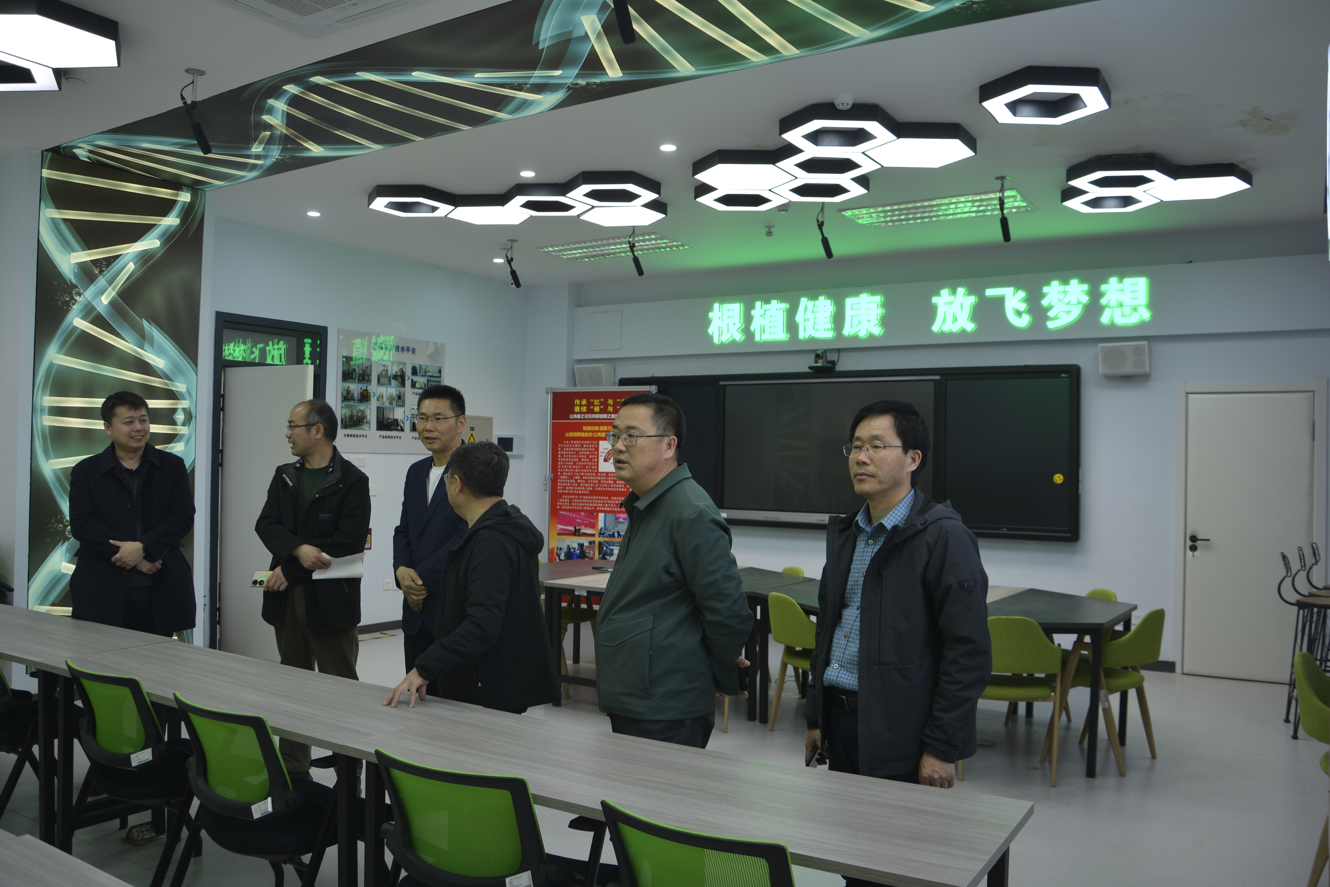 国家级生物实验教学示范中心。中心常务副主任孟庆繁研究员带领参观了中心档案室、配件室、信息化管理室、大健康梦工场、教学实验室和中试实训基地等,并详细介绍了中心建设、实践教学改革、实验教学队伍建设、实验室开放运行管理等情况。