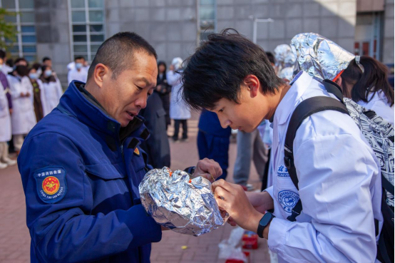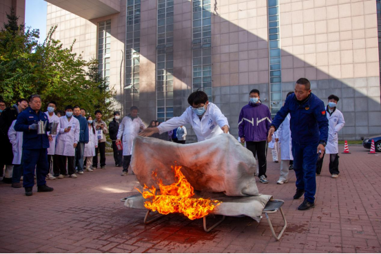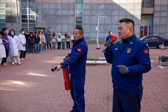 10时整,“火警信号”发出,各楼层迅速组织师生进行疏散,并按照预案进行火灾报警、人员疏散自救、抢救伤员、扑救初级火灾,全体师生在应急疏散中积极配合,听从指挥;各岗位人员各司其职、各尽其责、分工明确、有序地完成了疏散活动。在灭火演练过程中,保卫处消防科科长董立明详细介绍了消防自救面罩、各种类型灭火器和灭火毯的使用方法及注意事项,参与师生均能够遵守操作规程正确实施演练活动。