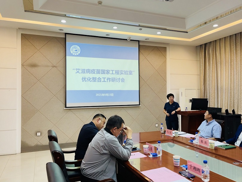 于湘晖院长汇报了艾滋病疫苗国家工程实验室的基本情况,“艾滋病疫苗国家工程实验室”建设至今,承担各类科研课题100余项,实验室主持研制的复合型艾滋病相关研究为我国艾滋病疫苗及其他疫苗的研究积攒了宝贵经验,具有重要指导意义。目前艾滋病疫苗国家工程实验室正在向国家工程研究中心重组及优化,于湘晖向大家介绍了第二批开展优化整合工作的国家工程研究中心和国家工程实验室名单,对此次参评的四家同行进行了详细分析,并针对实验室概况结合目前完成情况进行汇报。中心以支撑国家战略任务为主,主要攻克核心关键技术,助力推动产业持续发展。工程中心的优化整合将整合学校其他学院的优秀实验室资源,完善疫苗设计与构建、递送系统与佐剂、生产工艺、动物模型和临床研究五个阶段,使优化后中心实力增强、定位具有特色。最后于湘晖汇报了中心整合的根据计划时间推进表的现有完成情况,并提出了存在的问题,希望能借助学校力量,系统推进中心优化整合。