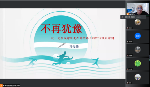 最后马俊锋依次解答了同学们针对考研科目、关键时间节点等方面的问题,建议并鼓励同学们不再犹豫、慎重选择、明确优势、找准信息、把握时机、相信自己!