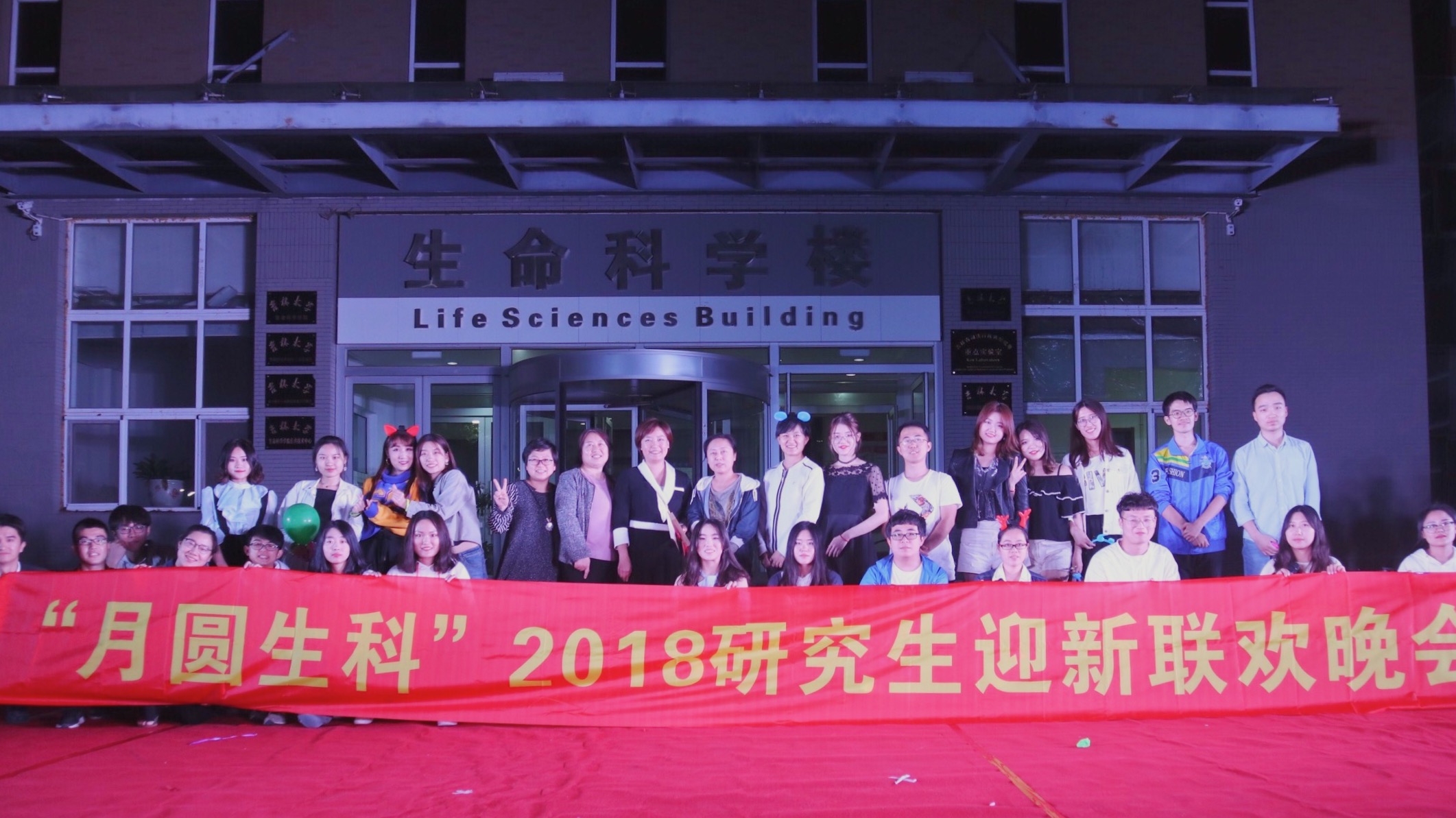 在生命科学楼前成功举办了“月圆生科”2018级研究生迎新晚会,学院领导、教师和2018级研究生新生参加晚会。