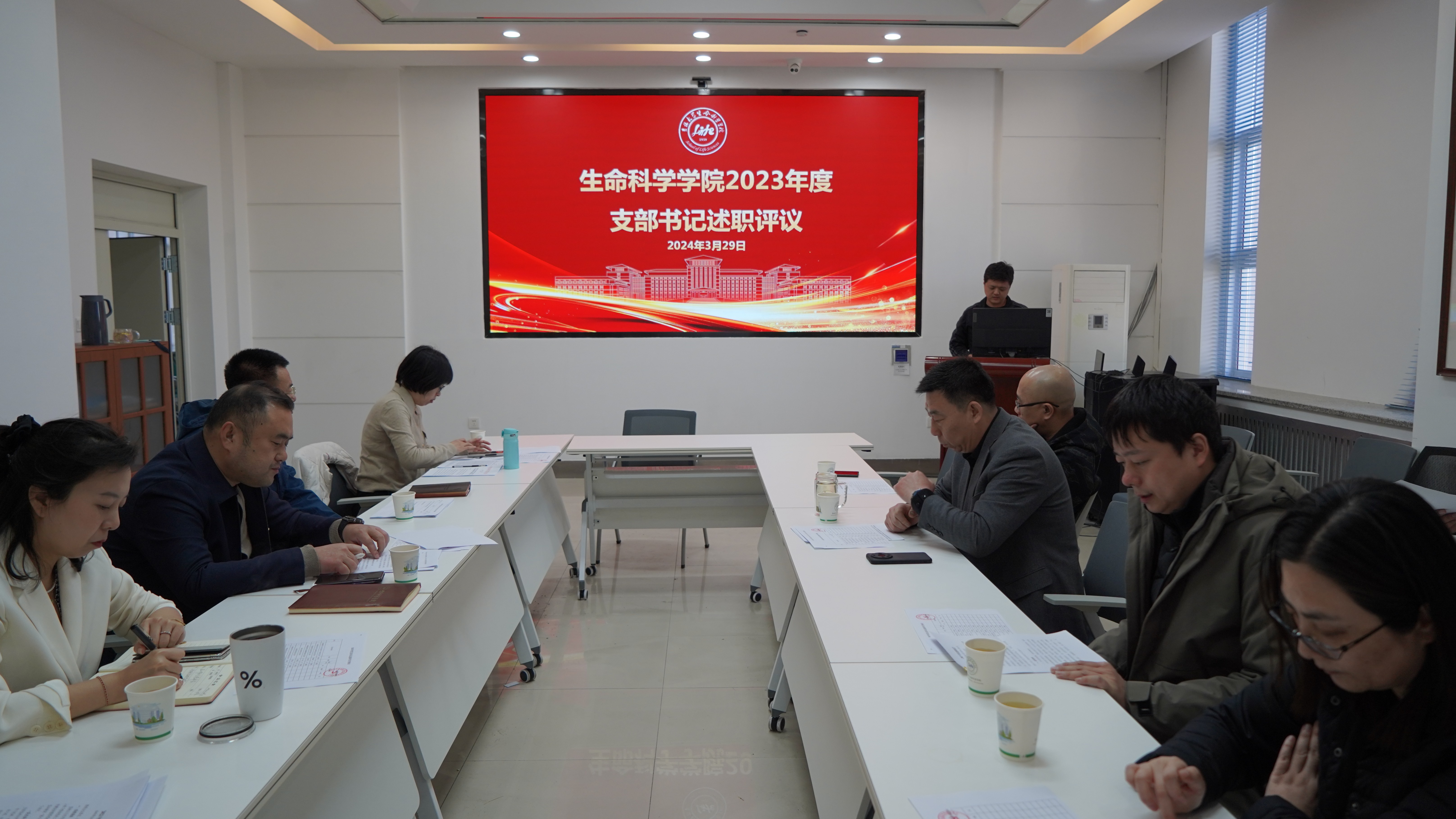 于生命科学楼335会议室召开2023年度党支部书记述职评议考核会。学院党委委员、学院各支部书记参加会议,党建工作联络员王德国列席会议,会议由党委书记白宇主持。