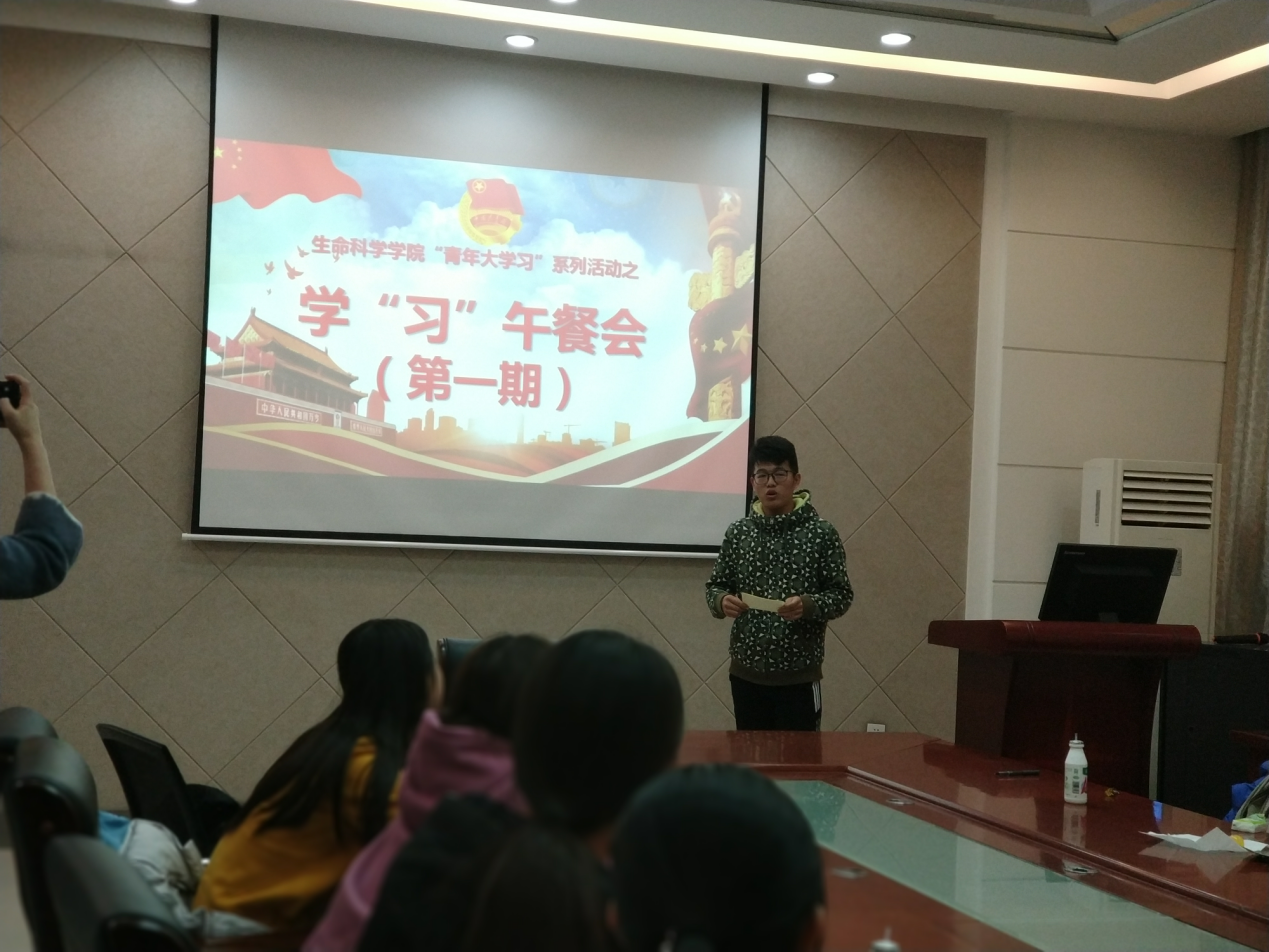 的近期学习氛围,就习近平总书记在十九大报告中提到的对中国青年的三大要求交流学习体会,希望入党积极分子在班级和集体的学习活动中起到带头作用。最后,青年大学习之学“习”午餐会在同学们的掌声中落下帷幕。