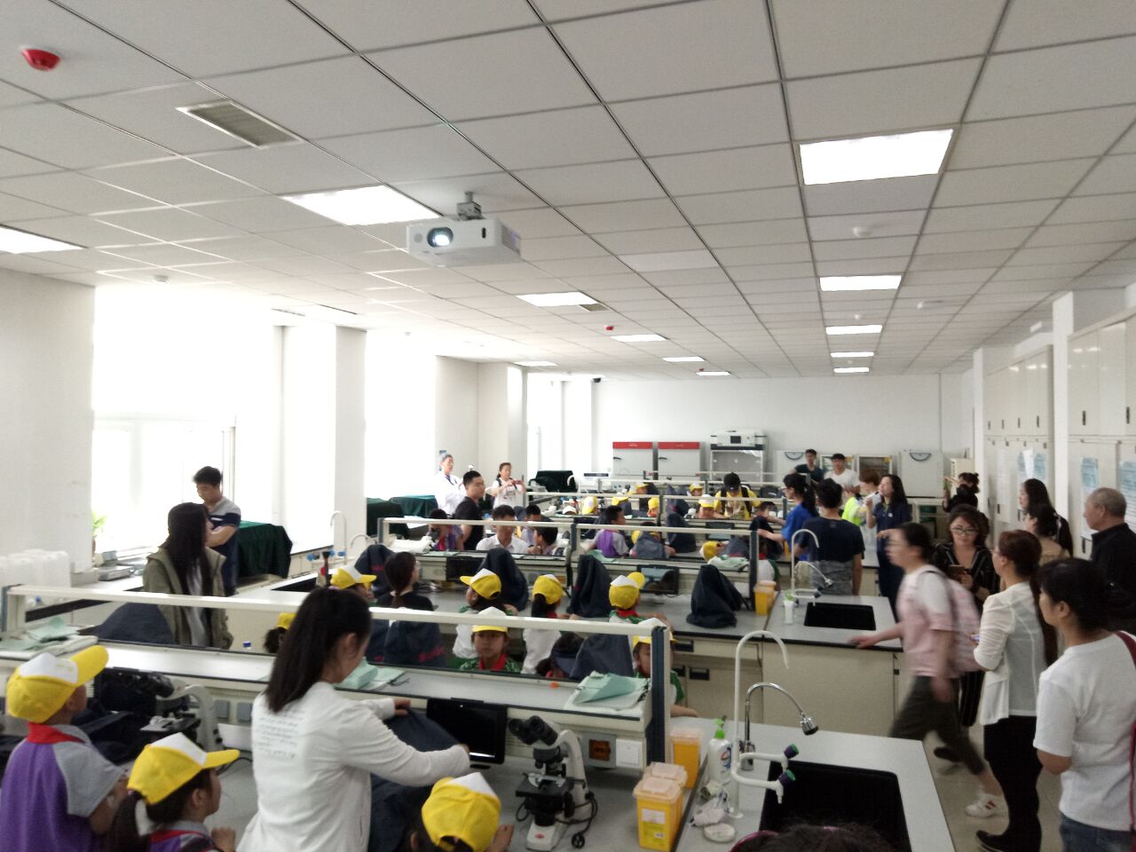 ,并拿到了志愿者发放的帽子。之后,在志愿者们的带领下,孩子们先是参观了唐楼实验室,体验生命科学的神奇,参与了丰富多彩的科学小实验,其中包括用显微镜观察草履虫、洋葱鳞片叶等切片。刘艳老师向孩子们详细介绍了实验中心各个实验室的历史和功能,并展示了实验室先进的仪器设备,在孩子们心里种下了科学与希望的种子。接下来,在博物馆讲解员的讲解下参观了楠楠漫画