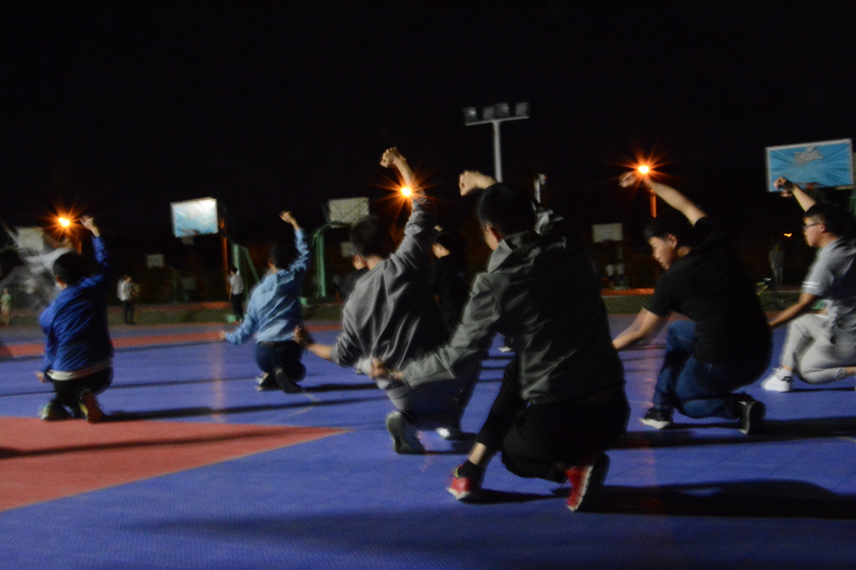 备战过程中,小伙子们每晚9:30在篮球场训练一个小时。连续20天,几乎天天满勤,从对长拳的陌生到动作整齐、有板有眼,他们付出了持之以恒的不懈努力。比赛开始时,小伙子们仍然抓紧时间跟着比赛场地的音乐在场地外一遍遍的完善动作。汇演时,小伙子们听从前台指挥,进场、退场、候场井然有序,尽展生科风采。同学们每晚一起练习,培养出了默契,原来陌生的面孔现在也是无比亲切。小伙子们意气勃发,首次在全校展现出楠楠漫画