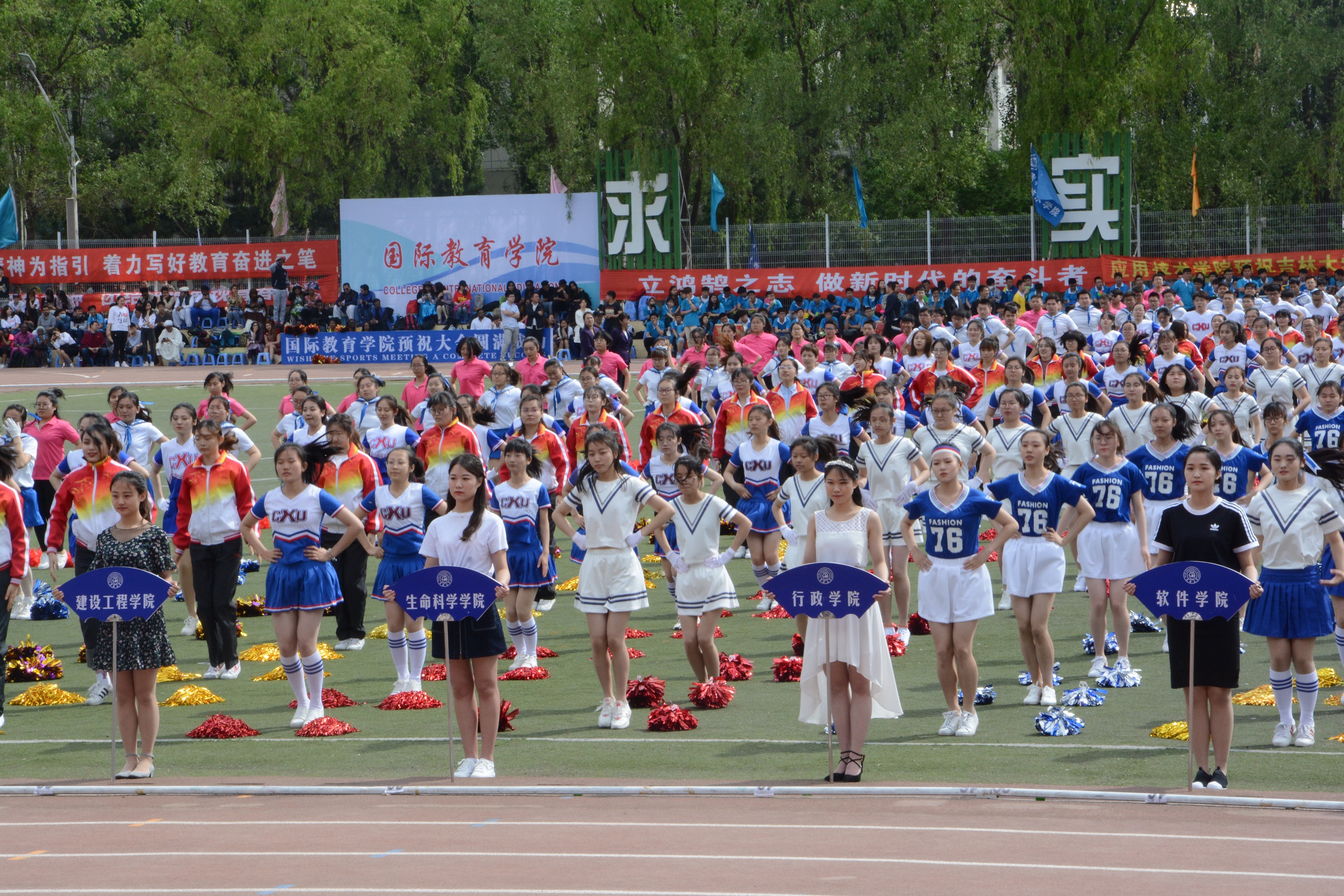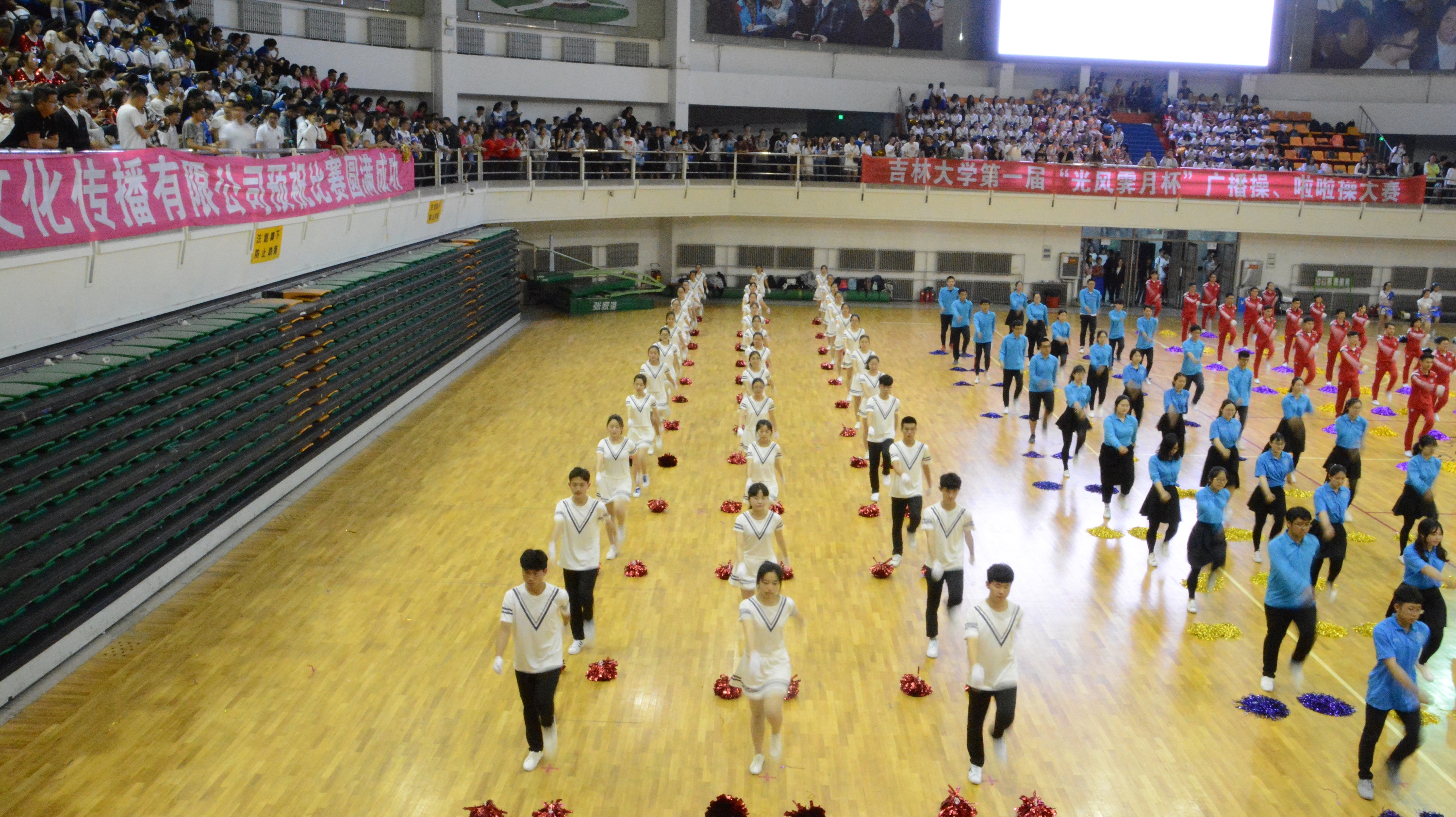 组织44位本科生同学参加本次广播操-啦啦操大赛,并从五月上旬起就安排了紧锣密鼓的排练。