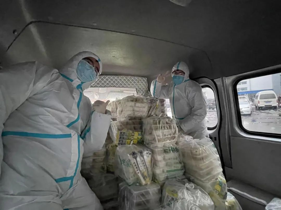楼上楼下运送了26车之多,堆成山一样的装满了三辆小货车。“我这辈子都没见过这么多饭。”胡斯源打趣道。为了保证“盒饭山”屹立不倒,配送过程中他全程站立,用身体固定住一摞摞盒饭。