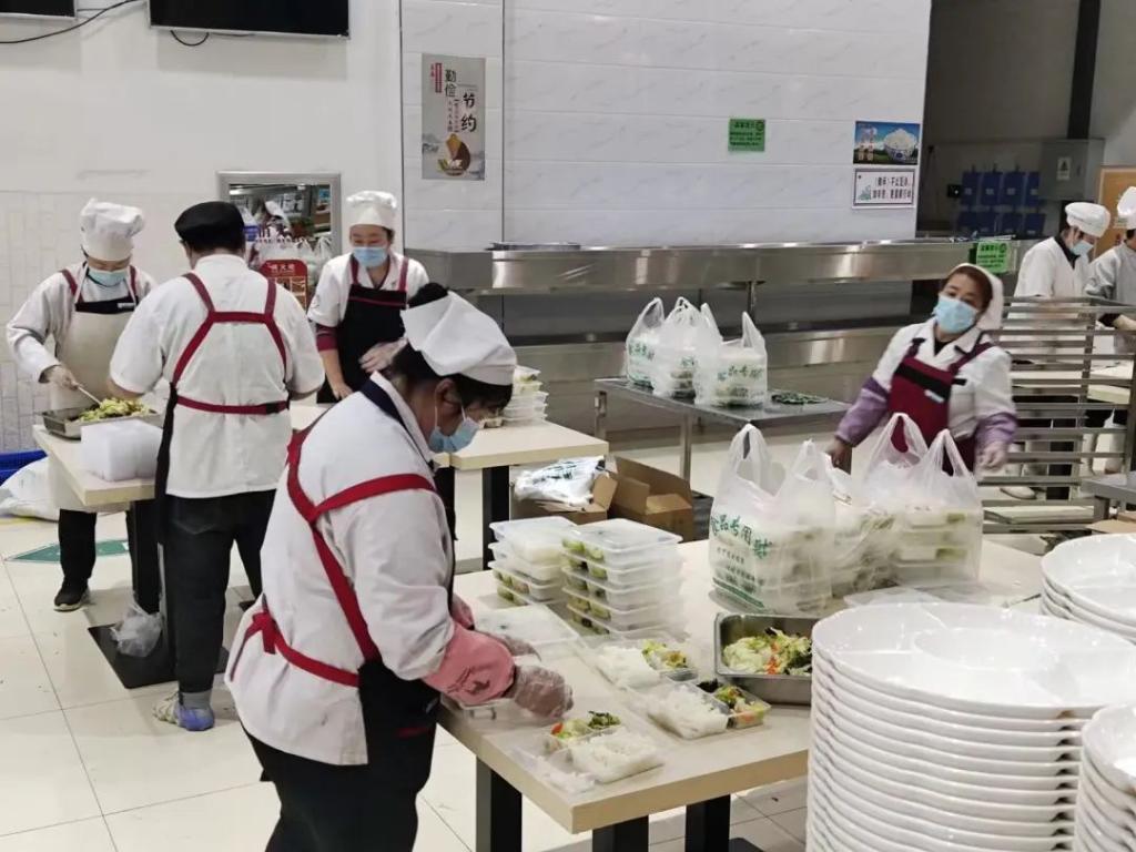 “同志们,由于疫情形势严峻,学校采取寝室封闭管理,我们要帮助后勤部门解决大家吃早饭的问题,学校需要我们的时候到了,希望大家全力以赴,守护我们的校园……”简单的介绍情况后,齐鹏老师为我们找来了防护用品,在一一检查了大家的穿戴情况后,我们每20人一个小组,分配到各个餐厅开展工作。