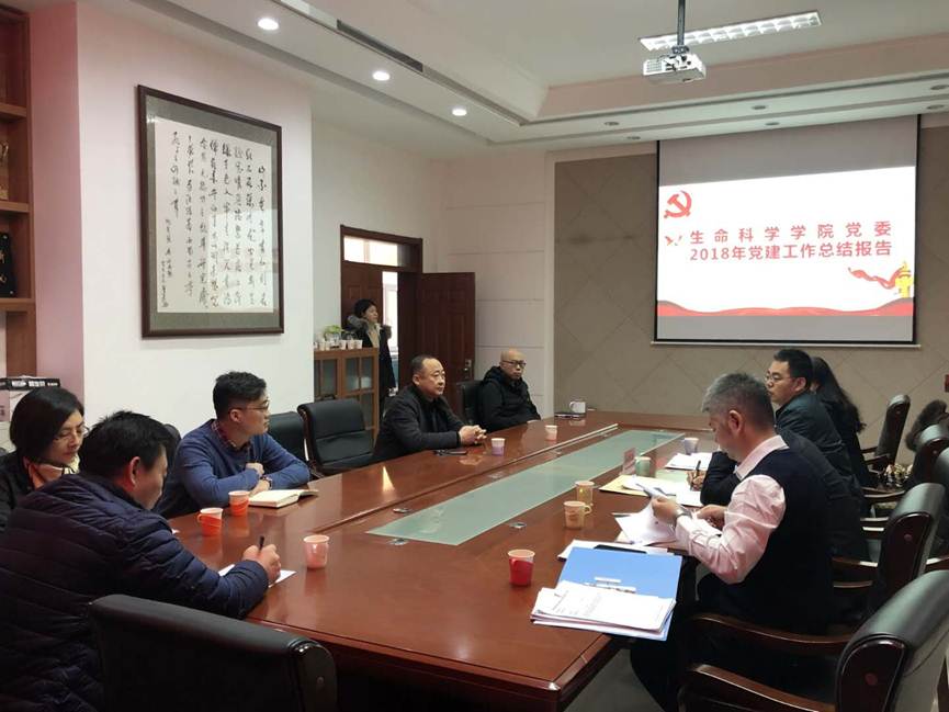 为全面贯彻落实习近平新时代中国特色社会主义思想和党的十九大精神,科学评价和准确把握基层党建工作成效,持续推进“两学一做”学习教育常态化制度化,2019年1月4日,学校党建工作考评组在纪委副书记陈希贵的带领下,一行四人来到我院进行2018年度党建工作考核评价。学院党委委员、纪委委员、党支部书记参加会议。