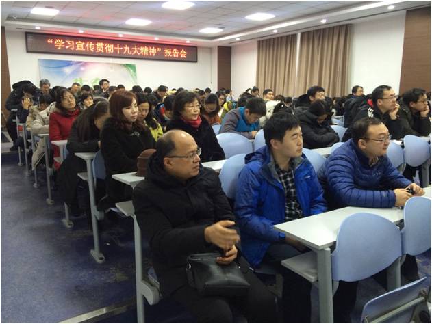 党委在生命科学楼107召开学习贯彻十九大精神专题报告会,邀请校宣讲团成员、马克思主义学院主义学院副院长吴宏政教授做题为《习近平新时代中国特色社会主义思想的三个重大判断》的主题报告。会议由学院党委书记李佰志主持,全院教职工和学生党员参加。