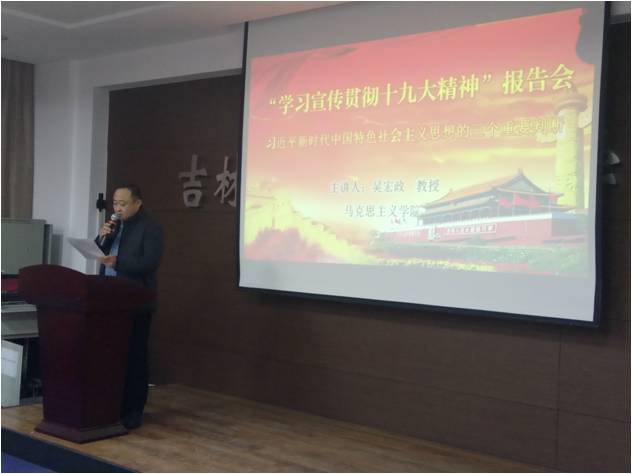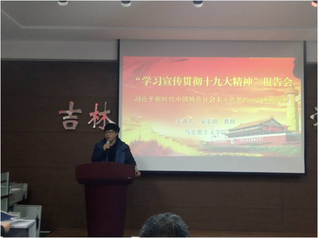吴宏政教授在报告以习近平新时代中国特色社会主义思想的三个重大判断为主要内容,即“中国特色的社会主义进入了新时代,这是我国发展新的历史方位;形成习近平新时代中国特色社会主义思想;我国社会主要矛盾已经转化为人民日益增长的美好生活需要和不平衡不充分的发展之间的矛盾最终在本世纪中叶建成富强民主文明和谐美丽的社会主义现代化强国”对这三个方面结合中国实际国情详细地展开介绍并解释,从党的十八大以来以习近平同志为核心的领导集体明确和确立了新时代中国特色社会主义,提出了一系列新思想,新观点,新战略。阐明了建设新时代中国特色社会主义的理念、新思想与新时代的关系以及新思想的理论作用。让我们意识到我国仍然处于并将长期处于社会主义初级阶段的基本国情没有变,我国仍是世界最大发展中国家的国际地位没有变的现状,从全面建成小康社会到基本实现现代化,再到全面建成社会主义强国的战略部署,我们要建成社会主义强国,显示出强大的决心和信心。整个报告精彩纷呈,让所有的党员同志获益匪浅,更加深切地领会了对于习近平新时代中国特色社会主义思想的认识。